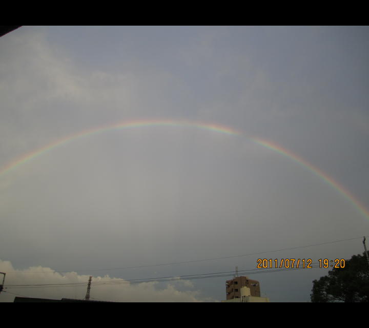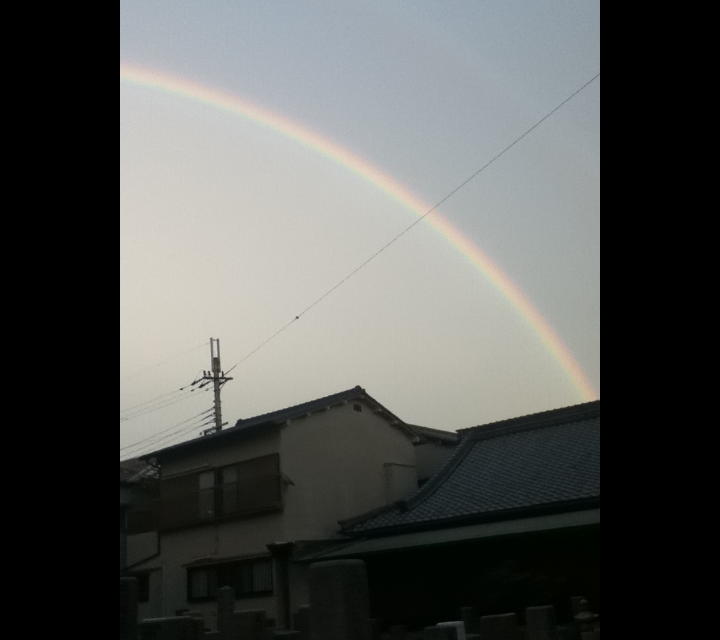 嫁と散歩中に虹発見。