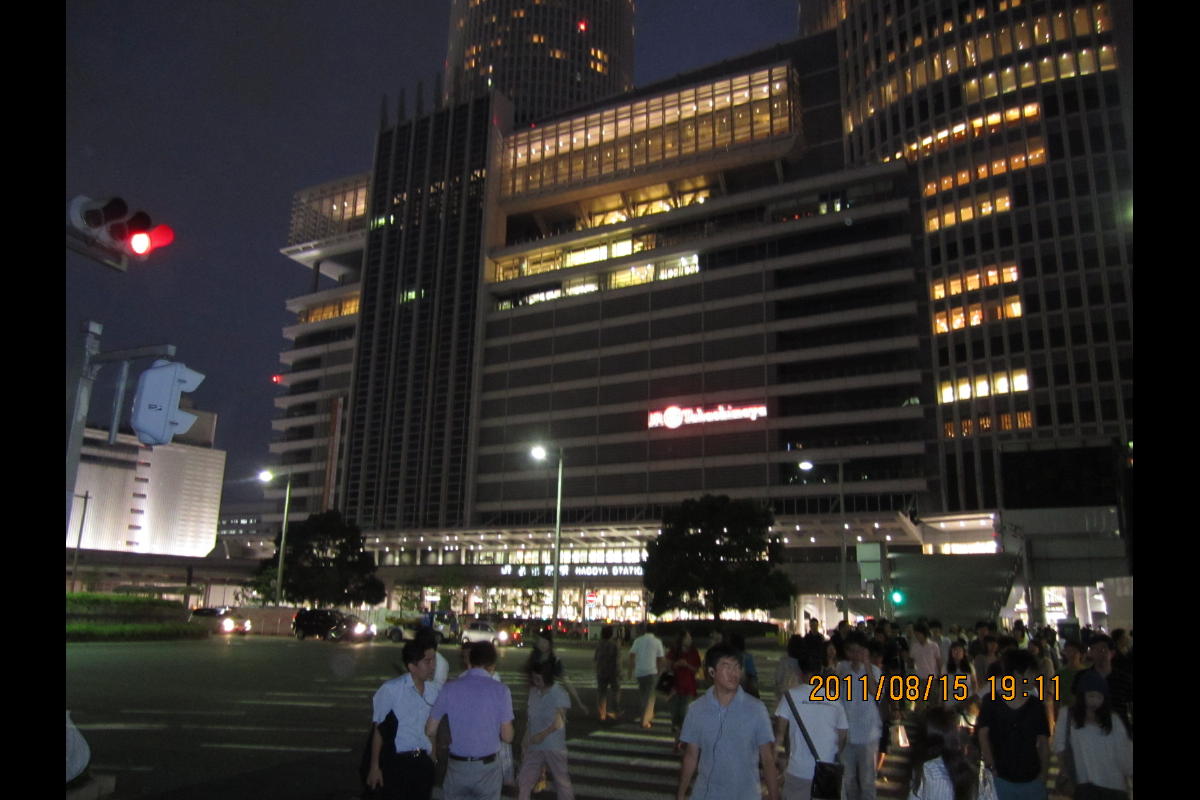 夜の名古屋駅前。かなり暑い。